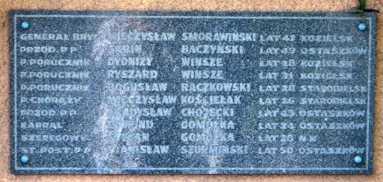 Tablica, z nazwiskiem Mieczysława Smorawińskiego, na murze ogrójca kościoła OO. Jezuitów.