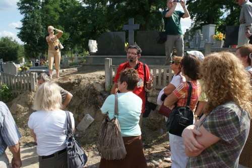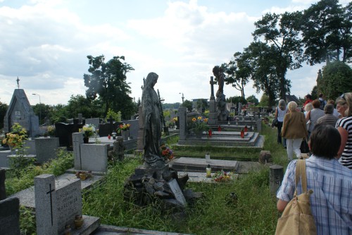 Na starcie zorganizowanej przez kaliskich przewodników PTTK XXIV edycji Kaliszobrania pojawiło się blisko 200 zwolenników tej imprezy. Liczba imponująca, zważywszy na trwający przecież sezon urlopowych wyjazdów, na konkurencyjne imprezy jakie tego dnia odbywały się w mieście jak i - pozornie - mniej atrakcyjny obszar wędrówki - dzielnicę Tyniec. Ten ostatni mit dwaj prowadzący spacer przewodnicy: Stefan Szymczak i Piotr Sobolewski obalili chyba jednoznacznie. Opowiadali bowiem o sięgających jeszcze epoki neolitu początkach osadnictwa w okolicach Kalisza, których ślady archeolodzy znaleźli właśnie na Tyńcu i o ich kolejnych tynieckich znaleziskach - z osadą w ramach ptolemeuszowej Kalisii włącznie. Opowiadali też o niezrealizowanym do końca projekcie sprzed dwóch wieków postawienia na tynieckim wzgórzu pomnika Napoleona i o tynieckich cegielniach Stencla i Sztarka oraz Binkowskiego i Graczykowskiego, które w okresie międzywojennej prosperity dostarczały do odbudowywanego właśnie Kalisza milionów cegieł, dachówek i sączków. Opowiedzieli wreszcie nieco o leżącym za cmentarzem Obszarze Chronionego Krajobrazu Doliny Rzeki Swędrni zachęcając przy okazji wszystkich do samodzielnych wakacyjnych jego odwiedzin. Najwięcej jednak uwagi i czasu poświęcono spacerowi alejkami założonego oficjalnie w 1885 r. (wcześniej funkcjonował jako miejsce pochówku ofiar epidemii) cmentarzowi tynieckiemu. Liczący obecnie ok. 8 ha powierzchni cmentarz "dorobił się" kilku znaczących miejsc pochówku i interesujących nagrobków. Przewodnicy wskazali m.in. odnowione ostatnio grób nieznanego żołnierza i zbiorową mogiłę 56 członków AK - ofiar egzekucji w lesie skarszewskim w styczniu 1945 r., miejsca pochówków proboszczów kaliskiej z kolegiaty ze znanym wśród uczniów kaliskich szkół ks. Kalinowskim i zmarłym przed dziesięciu laty ks. Andrzejczakiem, stary i nowy grobowiec oo. Jezuitów, w którym spoczywa m.in. ks. Stefan Dzierżek, mogiły powstańców styczniowych i zbiorową mogiłę ofiar pruskich egzekucji z sierpnia 1914 r. Uczestnicy dotarli do miejsc wiecznego spoczynku wielu znanych kaliszan: prof. Jerzego Rubińskiego, twórcy potęgi kaliskiego boksu - Antoniego Szymańskiego, małżeństwa Walczyńskich, nauczycieli, lekarzy, aktorów, restauratorów. W tzw. Alei Aniołów odnaleźli najstarsze piaskowcowe groby ze strzegącymi je od ponad wieku kamiennymi aniołami i aniołkami. Przy starym murze przewodnicy pokazali najstarszy z odnalezionych przez siebie grobowiec z zaznaczoną datą 1886 r. Nie zabrakło też historii o posmaku sensacyjnym - uczestnicy dotarli do kwatery samobójców, grobu wielokrotnego mordercy straconego w latach pięćdziesiątych po głośnym procesie, ofiar spektakularnych zabójstw i wypadków, wystawnych grobowców rodzin kaliskich biznesmenów itp. Przy grobie Alfreda Nowackiego zapoznali się z historią konspiracyjnej działalności tej postaci i okoliczności jego aresztowania i stracenia przez faszystów. Prowadzący tradycyjnie imprezę dr Piotr Sobolewski konkludował, iż po zakończeniu spaceru hasło tej edycji "Tyniec niepoznany" przynajmniej dla jego uczestników zdezaktualizowało się.